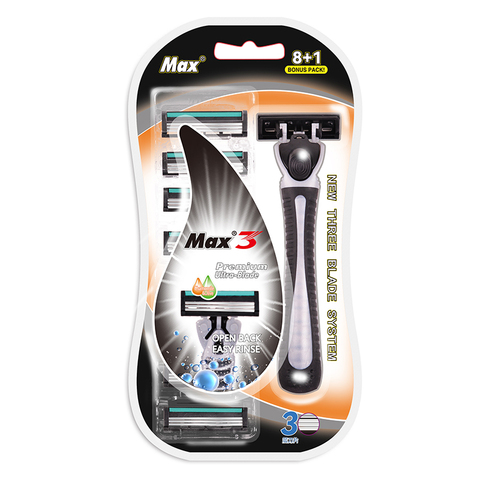Alta qualità max marca imballaggio in plastica tre lama rasoio usa e getta per gli uomini